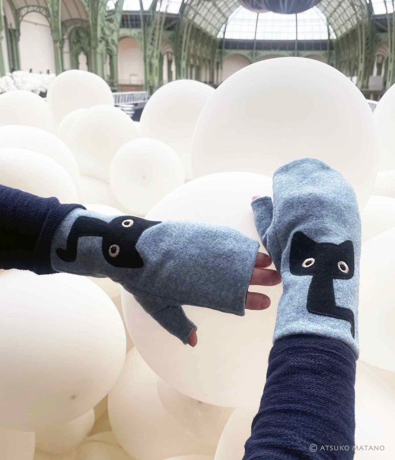 Fall for this vibrant pair of mittens, adorned with an adorable little black cat with big eyes! The perfect accessory for a touch of kawaii in your winter look.