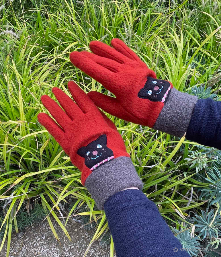 Add a touch of softness and whimsy to your winter outfits with these adorable gloves adorned with a black cat with mischievous eyes and a charming smile!