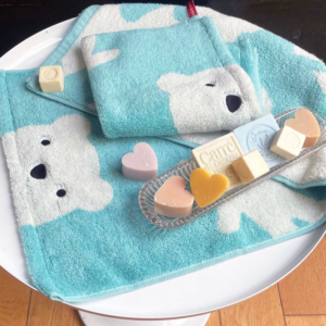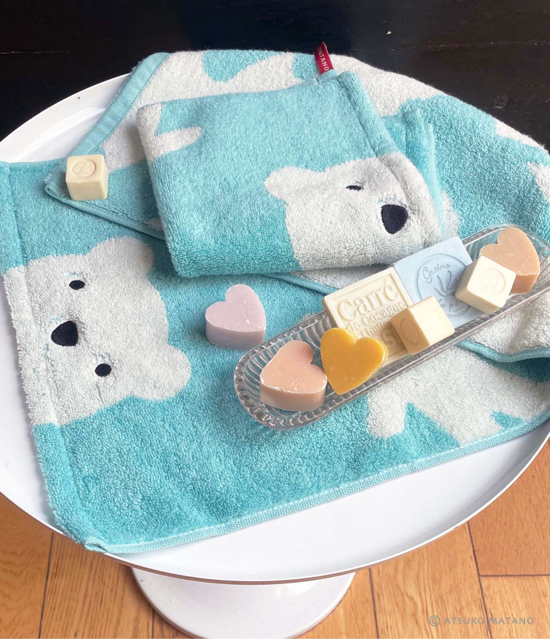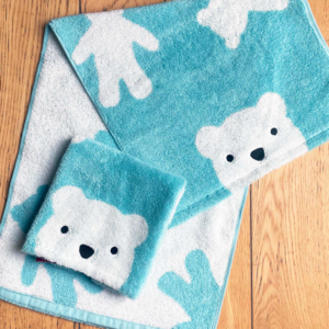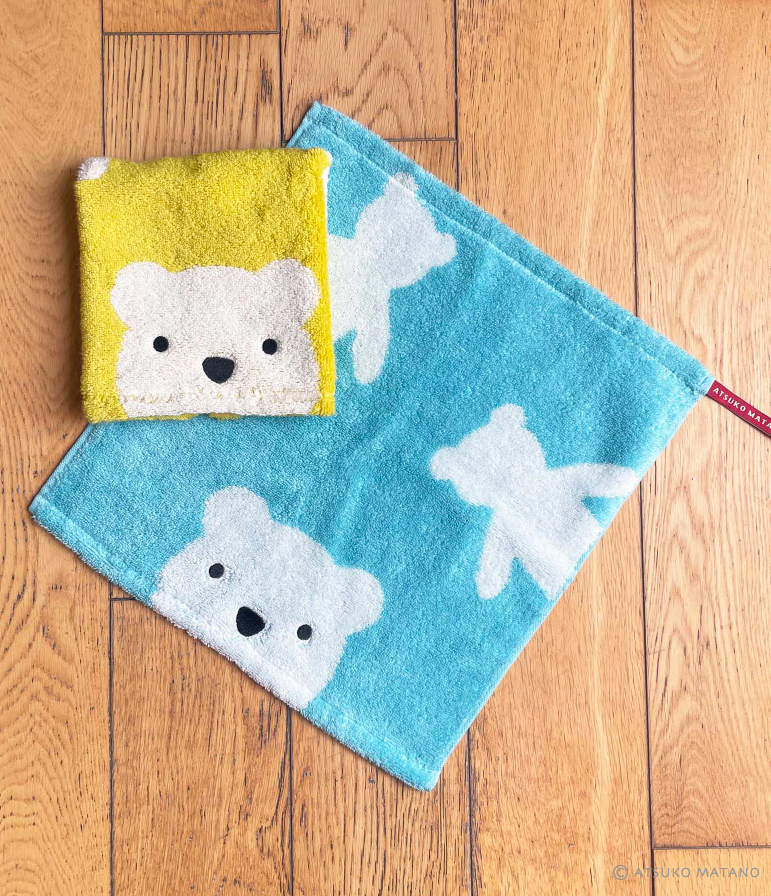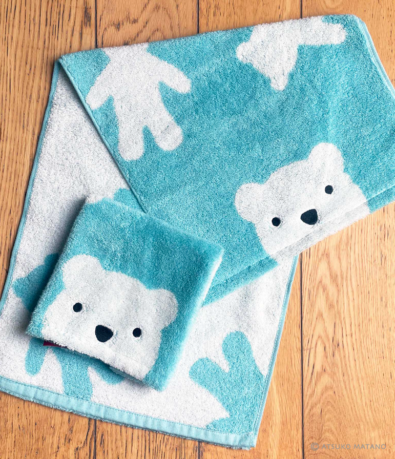 Serviette en éponge douce et absorbante, décorée d’un adorable ours polaire. ATSUKO MATANO, connue pour ses motifs de chats, propose ici un design original et plein de tendresse, idéal pour apporter une touche ludique au quotidien.